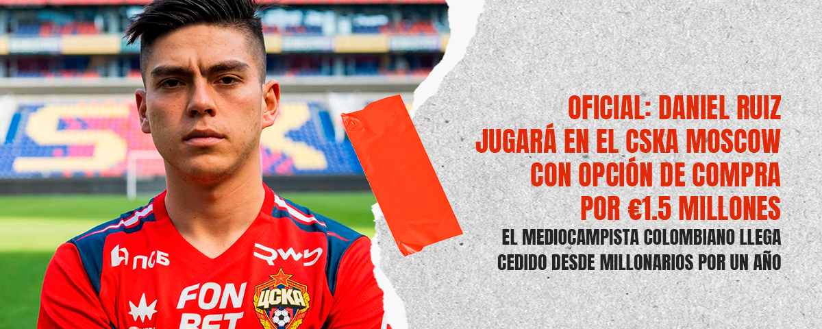 El CSKA Moscow confirmó este viernes la incorporación del colombiano Daniel Ruiz, quien llega procedente de Millonarios FC en calidad de préstamo por un año. La operación se cerró por €500 mil, con una opción de compra de €1.5 millones por el 80% de sus derechos federativos.