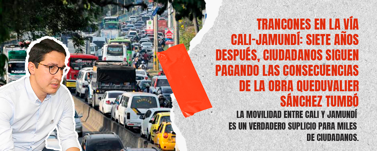 La movilidad entre Cali y Jamundí se ha convertido en un verdadero suplicio para miles de ciudadanos. Los interminables trancones son el resultado de la suspensión de la ampliación de la avenida Cañasgordas en 2018, decisión impulsada por el hoy representante a la Cámara, Duvalier Sánchez.