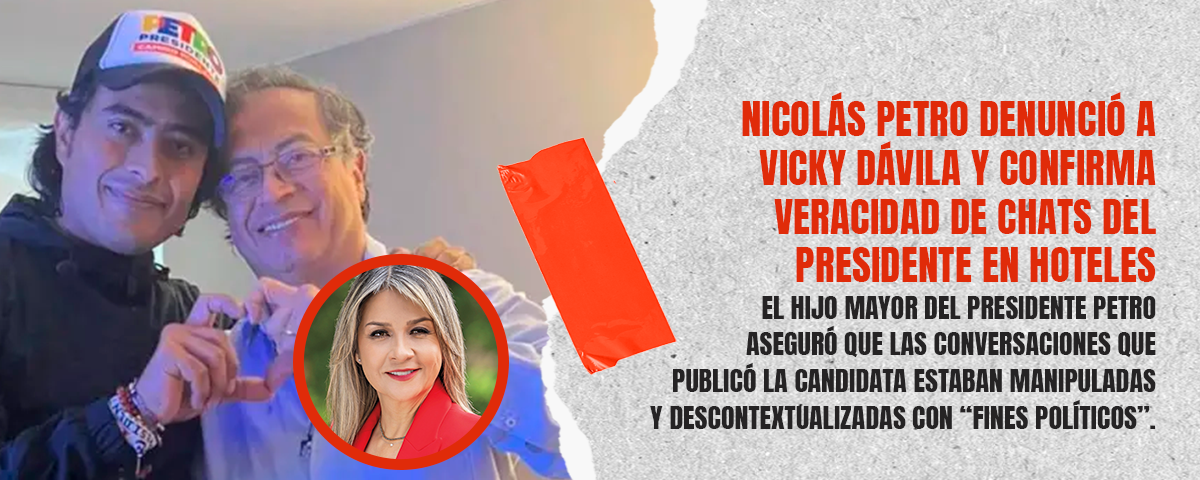 El hijo del presidente Gustavo Petro, Nicolás Petro Burgos, anunció que interpuso una denuncia penal contra la periodista y precandidata presidencial Vicky Dávila y su exesposa, Daysuris Vásquez, por la publicación de conversaciones privadas de WhatsApp.