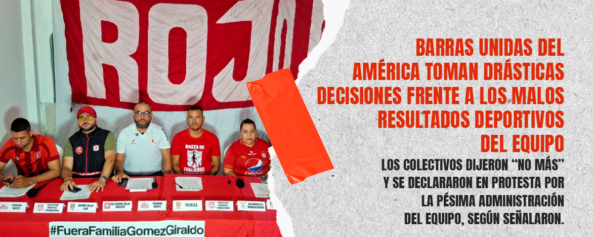 El ambiente en América de Cali se caldeó aún más. Las tradicionales barras y colectivos de la hinchada roja emitieron un comunicado en el que anuncian que no ingresarán al estadio Pascual Guerrero hasta que la familia Gómez Giraldo deje la administración del club.