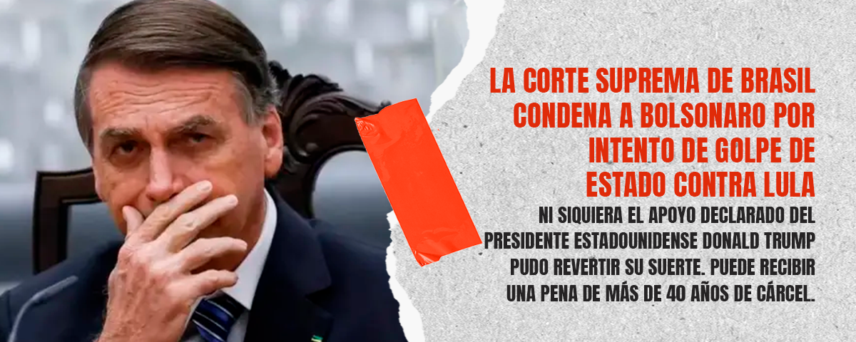 La Corte Suprema de Brasil condenó este jueves al expresidente Jair Bolsonaro por intentar un golpe de Estado tras perder las elecciones de 2022 frente a Luiz Inácio Lula da Silva.