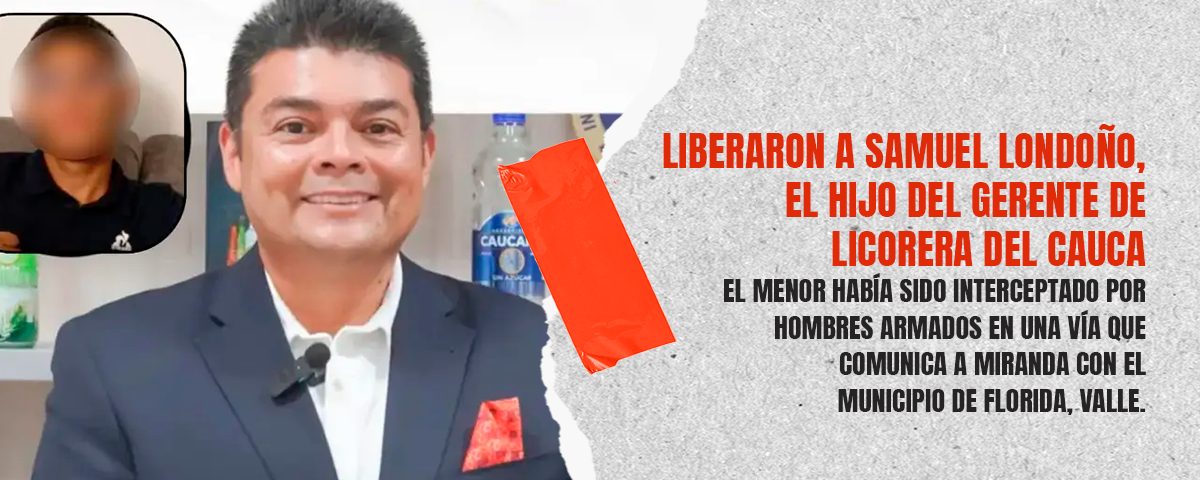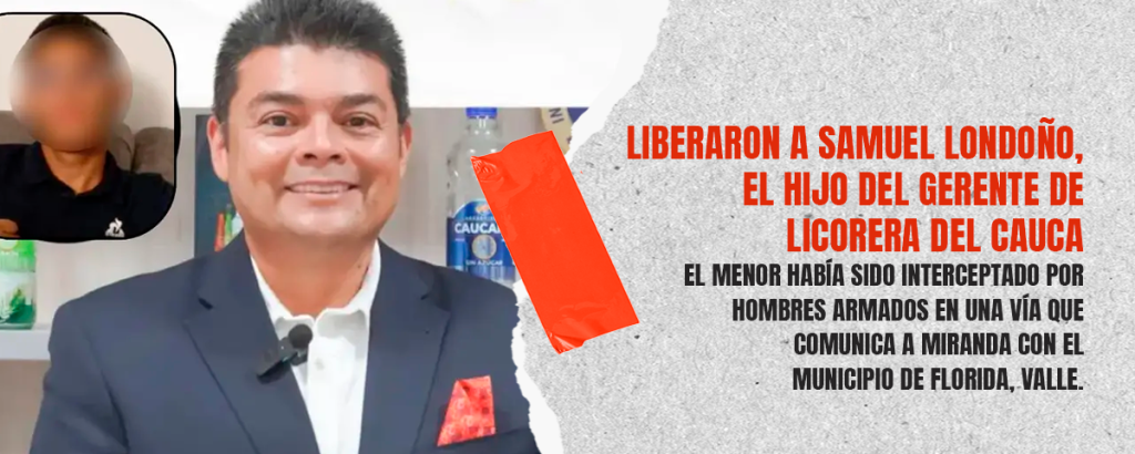 La Alcaldía de Miranda, Cauca, confirmó este viernes la liberación de Samuel Londoño Escobar, de 17 años, quien había sido secuestrado el pasado 2 de septiembre por hombres armados. El joven es hijo de Samuel Londoño Ortega, exalcalde del municipio y actual gerente de la Licorera del Cauca.