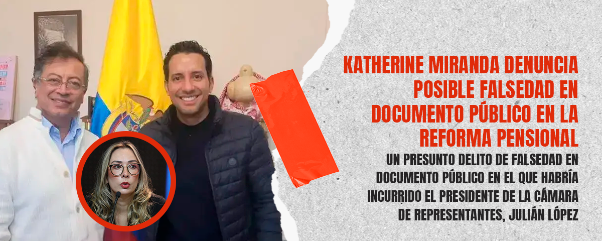 La representante a la Cámara Katherine Miranda lanzó una fuerte advertencia este viernes, al señalar un presunto delito de falsedad en documento público en el que habría incurrido el presidente de la Cámara de Representantes, Julián López, en medio del trámite de la polémica reforma pensional.