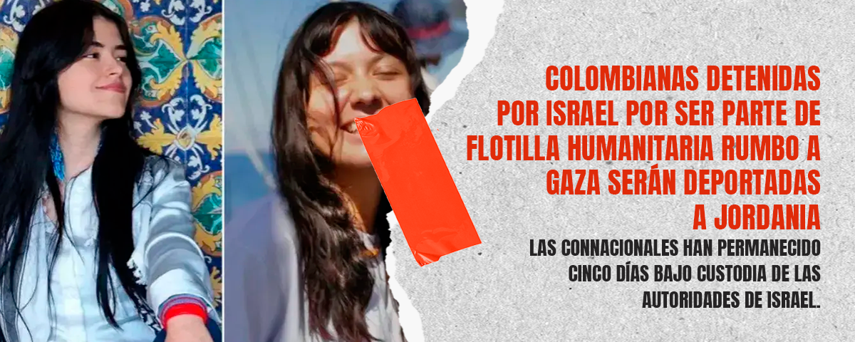 Las colombianas Manuela Bedoya Jaramillo y Luna Valentina Barreto Arango, detenidas por la Marina israelí desde el pasado 1 de octubre, serán deportadas este martes hacia Jordania, luego de permanecer bajo custodia por su participación en la flotilla humanitaria Global Sumud, con destino a la Franja de Gaza.