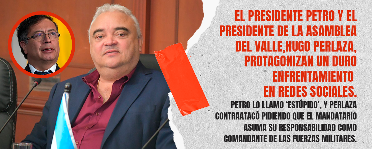 El presidente Gustavo Petro y el presidente de la Asamblea Departamental del Valle, Hugo Perlaza, protagonizaron este martes un intercambio de mensajes en la red social X, en medio de las críticas por la falta de apoyo del Gobierno a los proyectos estratégicos del departamento.