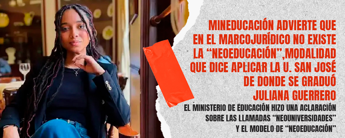 Esta institución privada se promociona como la “primera NeoUniversidad de Latinoamérica”, pero el Ministerio, a través de una carta firmada por Martha Elena Hernández Duarte, subdirectora técnica de la Subdirección de Aseguramiento de la Calidad, aclaró que “a la fecha, el ordenamiento jurídico colombiano no contempla una figura o modelo denominado ‘Neoeducación’”.