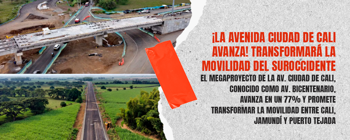 El megaproyecto de la Avenida Ciudad de Cali, conocido como Avenida Bicentenario, avanza en un 77% y promete transformar la movilidad entre Cali, Jamundí y Puerto Tejada, consolidándose como una de las obras de infraestructura más importantes del suroccidente del país.