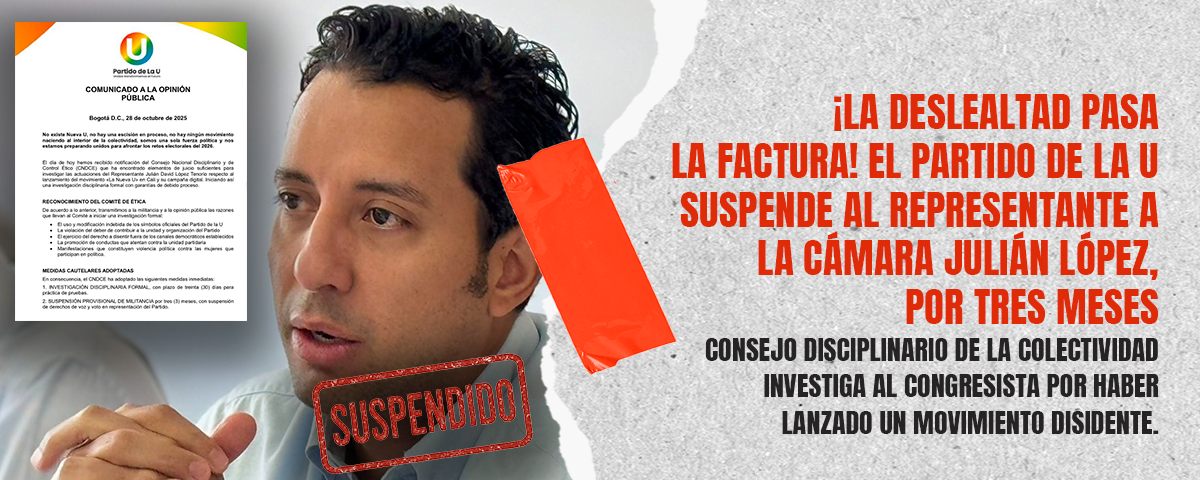 El Consejo Nacional Disciplinario y de Control Ético del Partido de la U anunció este martes la apertura de una investigación formal contra el representante Julián López Tenorio, actual presidente de la Cámara de Representantes, tras haber impulsado el lanzamiento de un movimiento político alterno denominado “La Nueva U”.