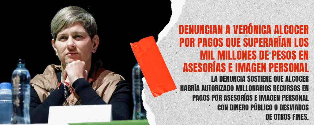 La primera dama de la Nación, Verónica Alcocer, fue denunciada penalmente ante la Fiscalía General de la Nación por presuntas irregularidades en la contratación de servicios relacionados con su imagen personal y asesorías privadas, según informó el ciudadano Juan Carlos Portilla, quien radicó la acción judicial este miércoles.