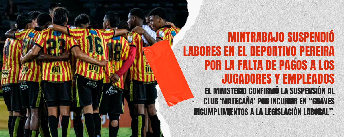 El Ministerio del Trabajo confirmó este jueves 30 de octubre la medida cautelar de suspensión de labores contra el Deportivo Pereira por “graves y reiterados incumplimientos a la legislación laboral”, especialmente por los retrasos y la falta de pagos a jugadores y empleados.