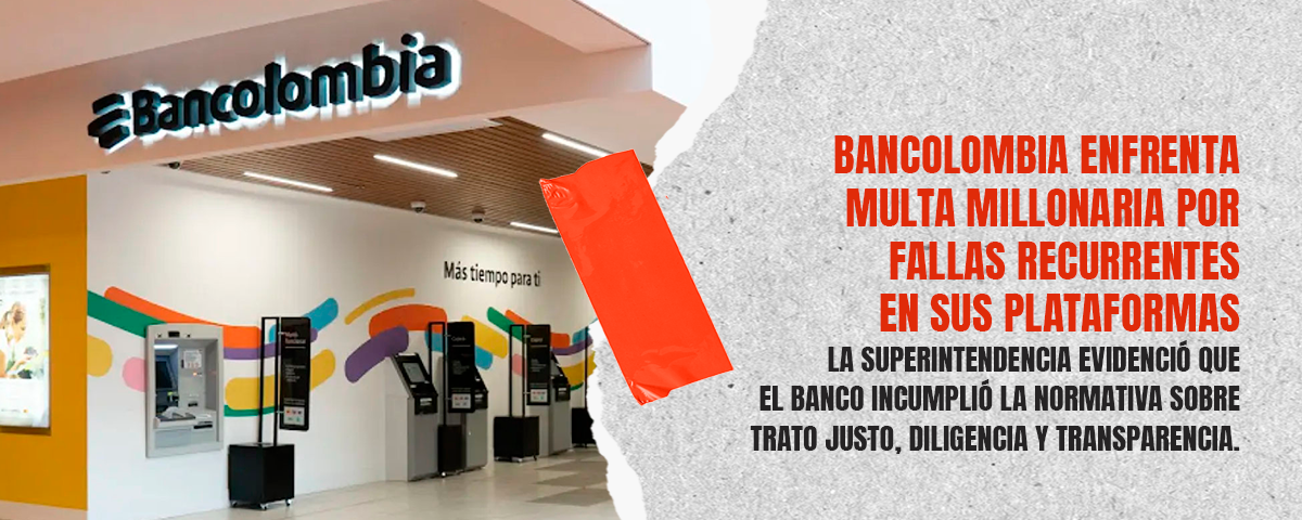 La Superintendencia Financiera de Colombia impuso una multa de quinientos millones de pesos ($500.000.000) a Bancolombia S.A. tras determinar que la entidad incurrió en incumplimientos normativos durante las fallas registradas en sus servicios digitales los días 3, 4 y 5 de junio de 2024.