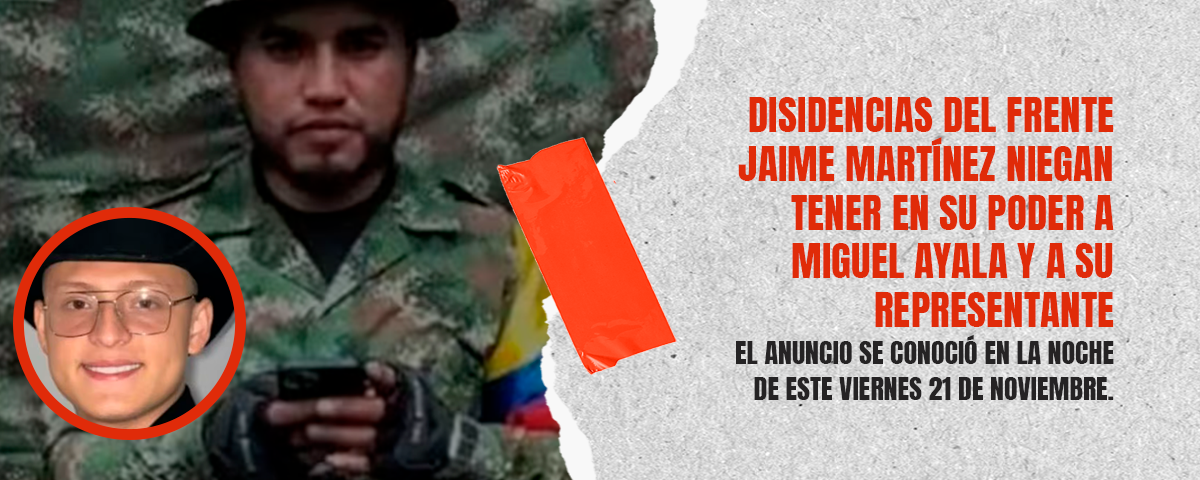 En la noche de este viernes 21 de noviembre, el frente Jaime Martínez de las disidencias de las Farc difundió un video en el que asegura que no tiene ninguna relación con el secuestro del cantante de música popular Miguel Ayala y su representante, Víctor Nicolás García Pantoja, desaparecidos desde el pasado 18 de noviembre.