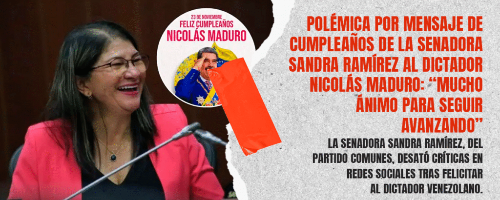 La senadora Sandra Ramírez, integrante del partido Comunes y excompañera sentimental del fallecido jefe guerrillero Manuel Marulanda Vélez, desató una nueva polémica este 23 de noviembre tras publicar un mensaje de cumpleaños dirigido a Nicolás Maduro, presidente de Venezuela, quien cumplió 63 años en medio de crecientes cuestionamientos internacionales por presunto fraude en las elecciones del 28 de julio de 2024.