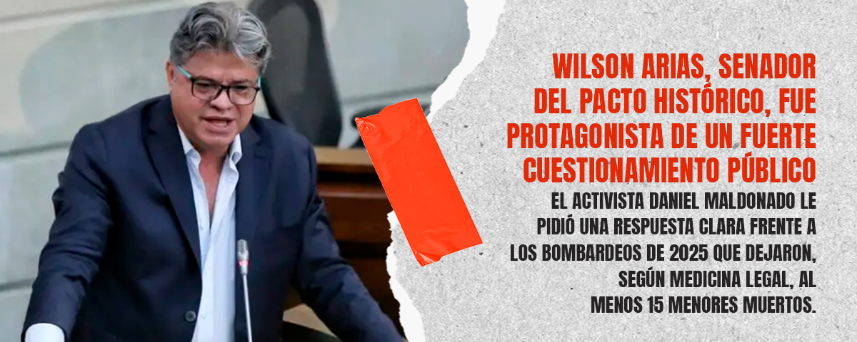 El senador Wilson Arias, del Pacto Histórico, quedó nuevamente en el centro de la discusión pública tras un cruce con el activista Daniel Maldonado, quien le pidió una posición clara frente a los recientes bombardeos realizados por las Fuerzas Militares en 2025 en Guaviare, Amazonas y Arauca. Según Medicina Legal, en esas operaciones murieron al menos 15 menores de edad.