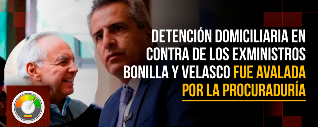 La Procuraduría General de la Nación avaló la solicitud de detención domiciliaria contra los exministros Ricardo Bonilla, de Hacienda, y Luis Fernando Velasco, del Interior, dentro del proceso penal que se adelanta por presuntos hechos de corrupción relacionados con la Unidad Nacional para la Gestión del Riesgo de Desastres (UNGRD).