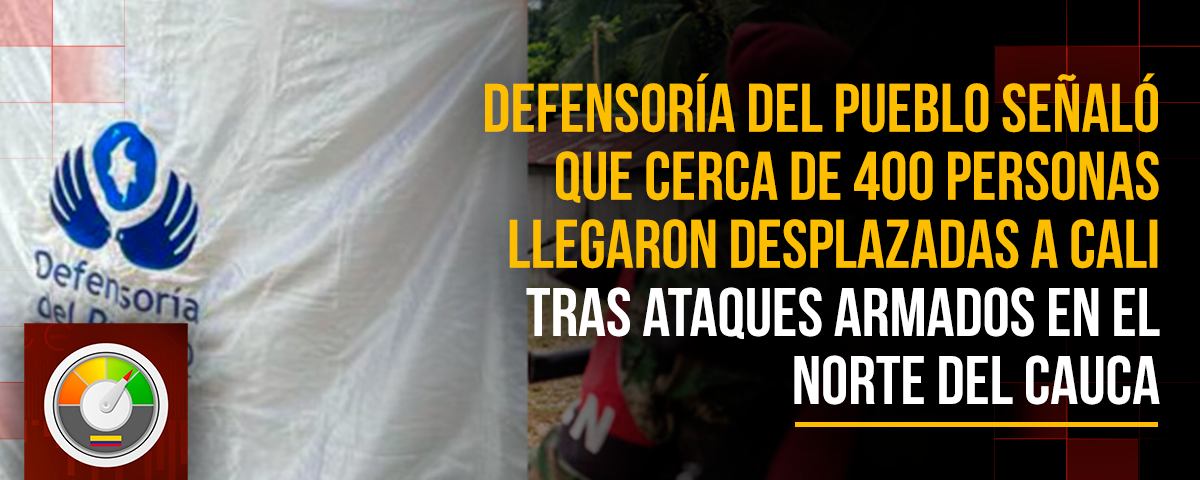 La Defensoría del Pueblo alertó sobre un nuevo caso de desplazamiento forzado en Colombia, luego de informar que 176 familias, integradas por cerca de 400 personas, llegaron en las últimas horas a la ciudad de Cali tras abandonar sus hogares en el municipio de Buenos Aires, en el norte del departamento del Cauca.