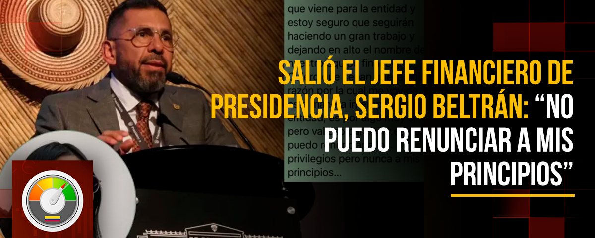 El jefe financiero de la Presidencia de la República, Sergio Beltrán, renunció a su cargo este viernes, según conoció en primicia EL COLOMBIANO, tras acceder a un chat interno de la Casa de Nariño en el que el funcionario explicó los motivos de su salida.