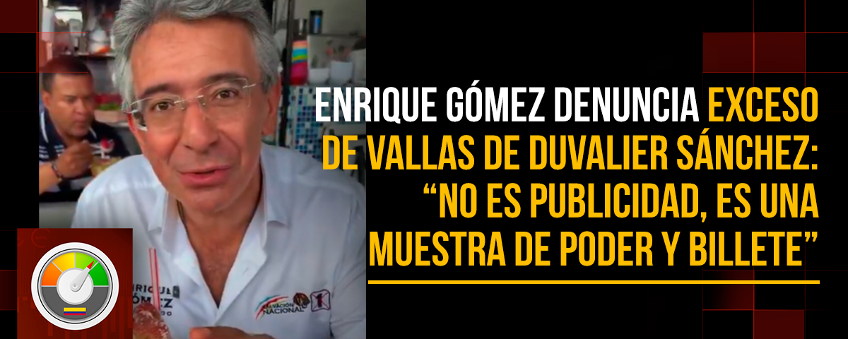 En medio de la campaña electoral hacia las elecciones legislativas de 2026, el candidato al Senado Enrique Gómez denunció públicamente el exceso de vallas publicitarias atribuidas al representante a la Cámara Duvalier Sánchez, integrante del Partido Verde.