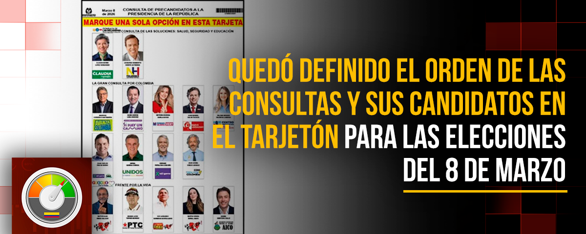 La Registraduría Nacional del Estado Civil definió este viernes 6 de febrero, mediante sorteo transmitido y publicado en sus canales oficiales, la ubicación de los bloques políticos y los precandidatos presidenciales en el tarjetón que se utilizará en las elecciones del próximo 8 de marzo.