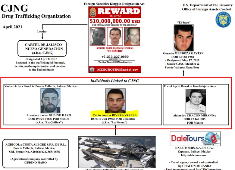 También existen reportes que lo vinculan como posible intermediario entre estructuras criminales colombianas y el CJNG, especialmente en temas de narcotráfico y fabricación de explosivos.