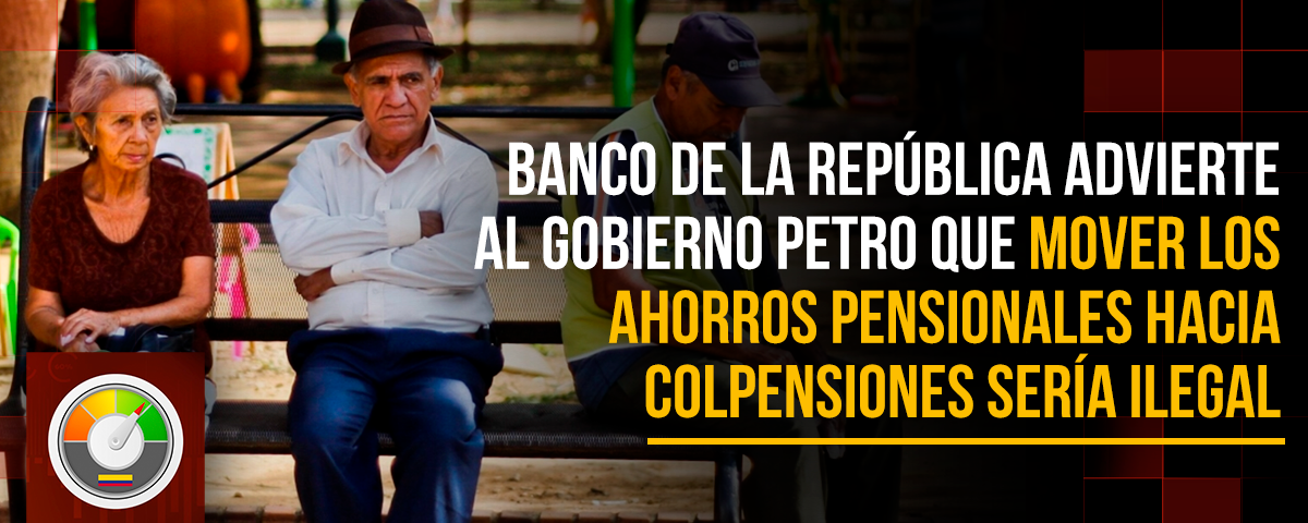 El Banco de la República advirtió que la propuesta del Gobierno del presidente Gustavo Petro de trasladar ahorros pensionales desde los fondos privados hacia Colpensiones no tiene sustento legal.