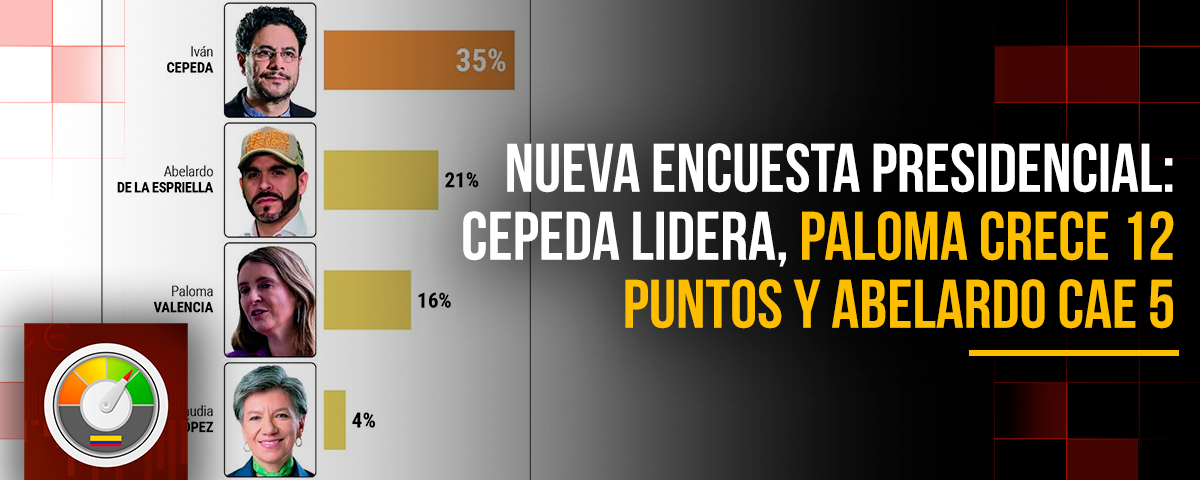 El sondeo mantiene a Iván Cepeda como líder en intención de voto con un 35%, consolidando su presencia en una eventual segunda vuelta. Sin embargo, el escenario político comienza a mostrar cambios relevantes.